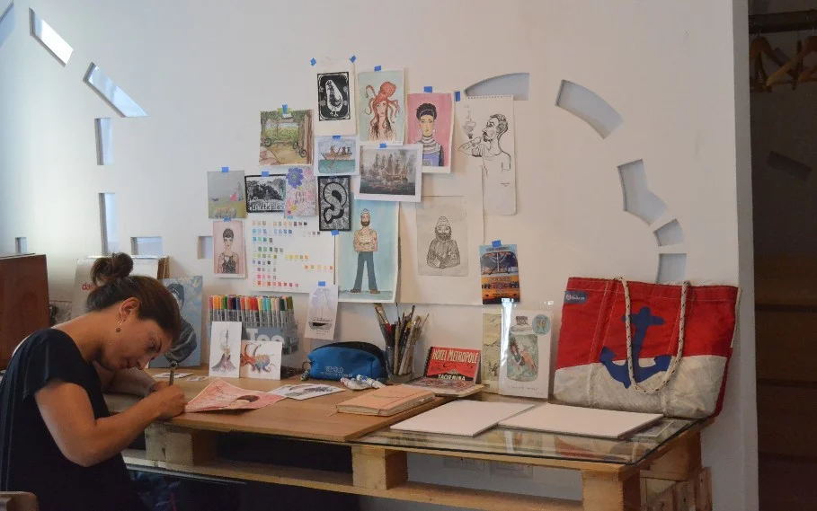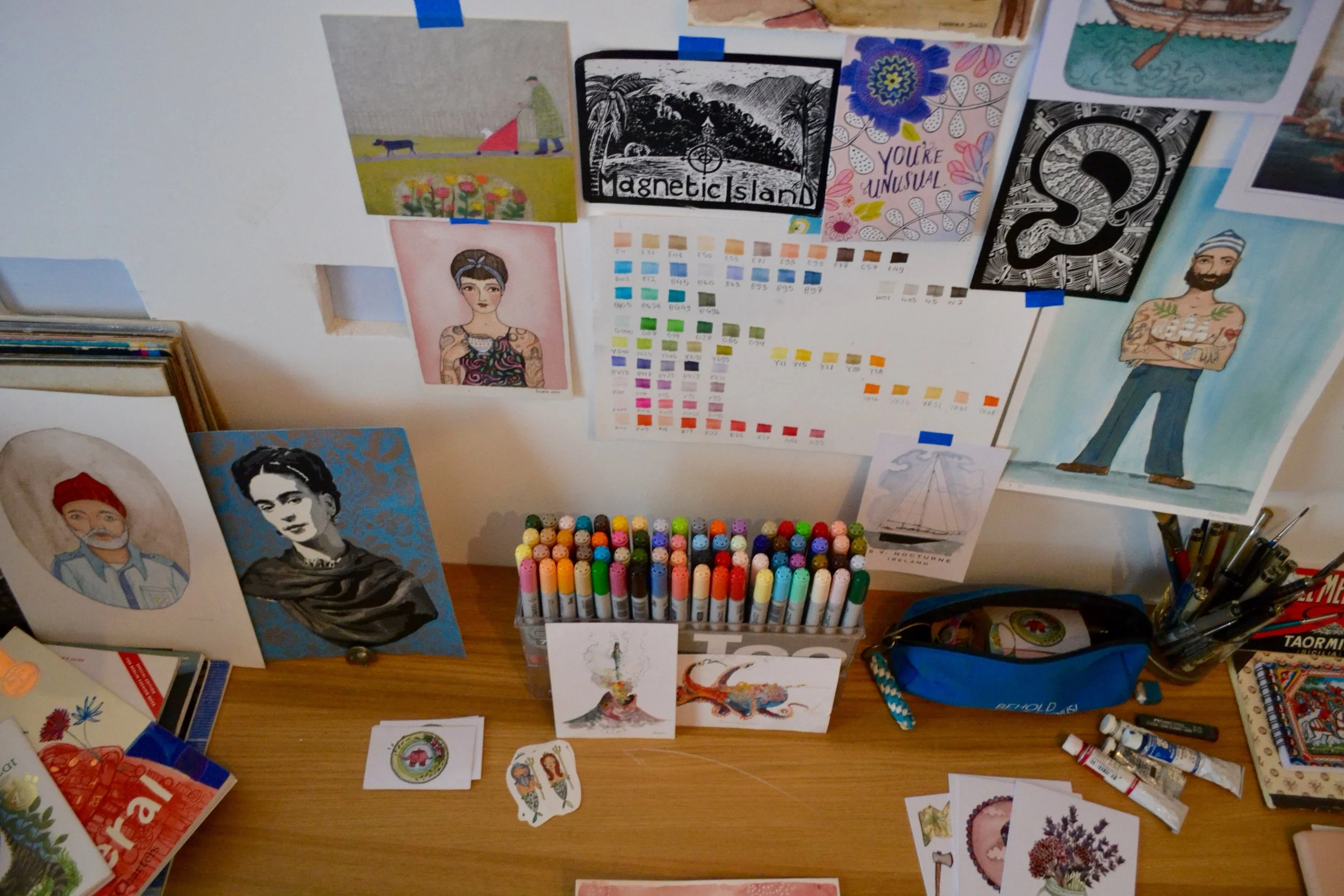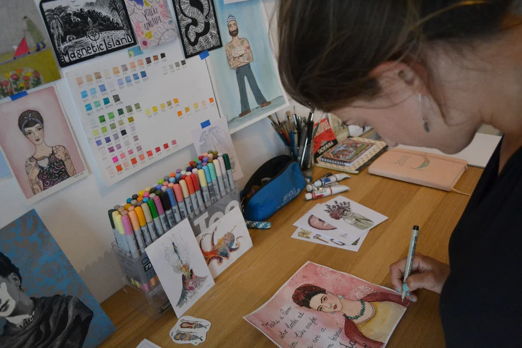It was a wonderful space and conveniently located next to the best gelato shop in town. I worked on all three commissions, doing pencil sketches and coming up with ideas and then emailing my customers. I also managed to have a little extra time to do a watercolour painting of Frida Kahlo.